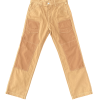 Inspired by the Double Knees Work Pants from Carhatt but these “Rancher” Work Trousers going with different details and material for better movement at work. Also they will much more durable and breathable for working times or even for outdoor times and daily activities. We’re using the Jungle Cloth fabric – also known as Bedford Cloth with 100% Organic Cotton. All the part of those trousers from side to side, from part to part were arranged very carefully with putting the yarn of the fabric goes vertical. It’s different with normal arrangement usually seen on the Bedford Cloth fabric.This kind of arrangement makes the trouser getting more durable, special look and unique effect for aging process.